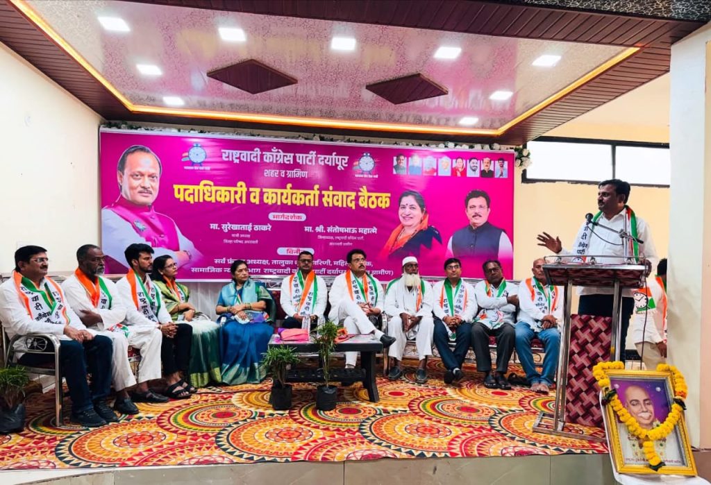 राष्ट्रवादी काँग्रेस पक्षाची दर्यापूर येथे ‘रणनीती’ बैठकराष्ट्रवादी काँग्रेस पार्टी, अमरावती (ग्रामीण) तर्फे तालुकास्तरीय पदाधिकारी आढावा बैठक संपन्न